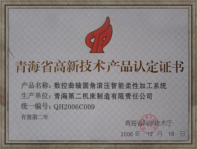 青海省名牌產(chǎn)品證書